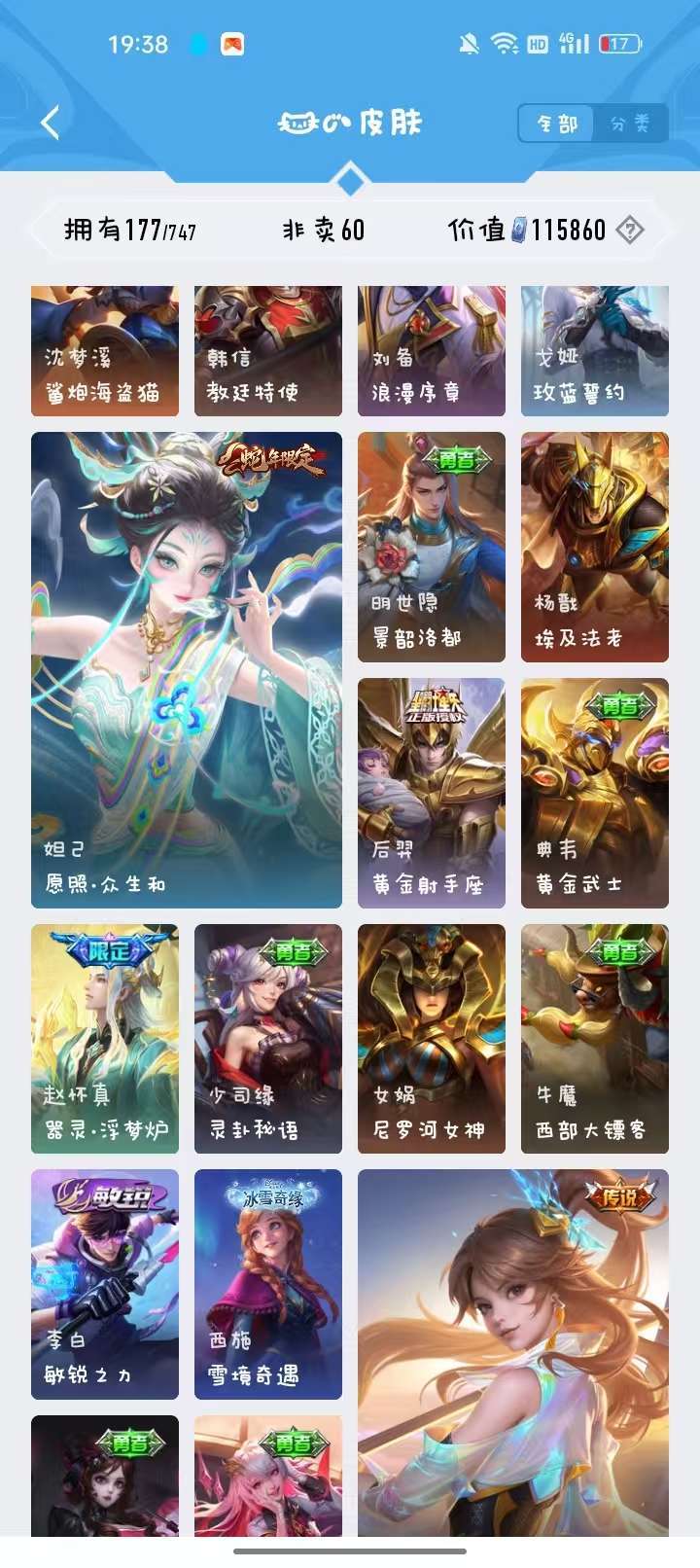 v10★6典藏鸣剑曳影等★至尊宝等限定★29传说353皮肤