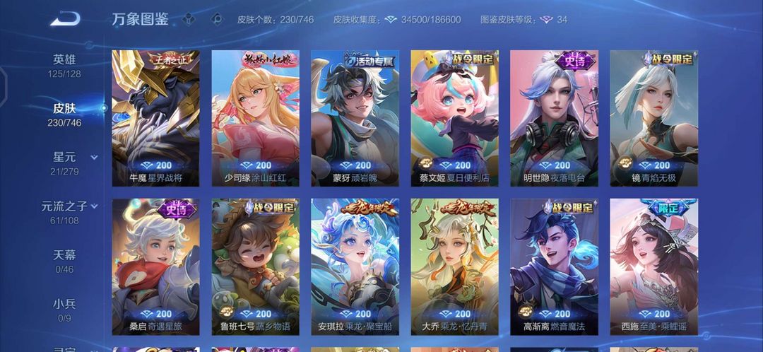 【V7 92皮】传说皮肤7个史诗皮肤14个限定皮肤22全部皮肤60个成为英雄吕布钟无艳孙尚香