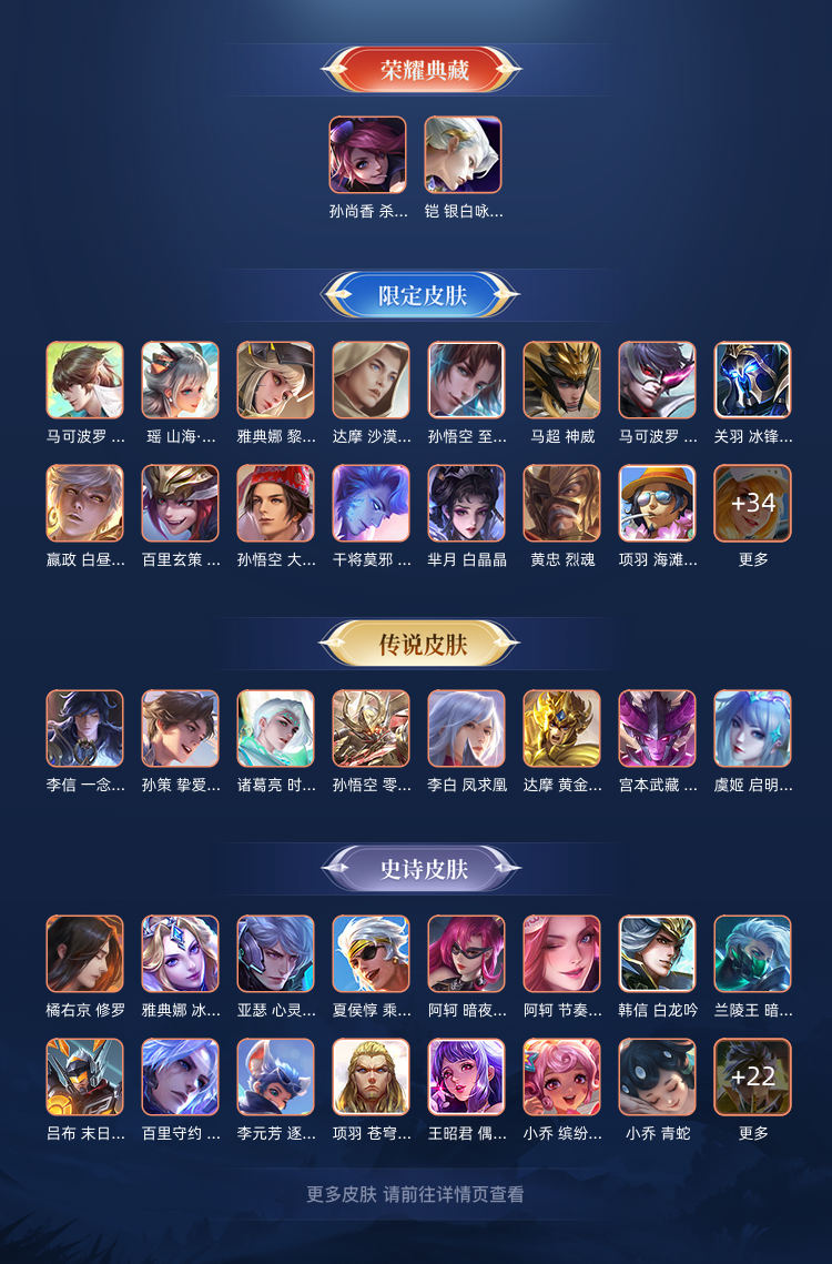 虞姬蛇年,老虎虎年,镜赤阳神光,公孙丽机甲,嫦娥传说,还有一些限定皮肤