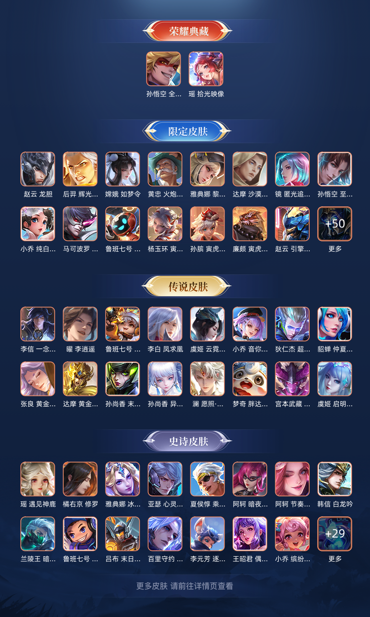 76皮肤/全息碎影/凤求凰/飞衡/偶像歌手/银河之约/千年之狐/节奏热浪/暗隐猎兽者/圣