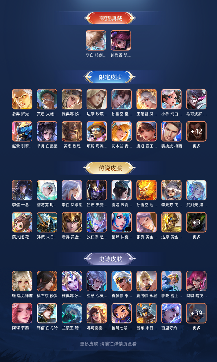 【V10 445皮】贵族v10⚡小国标李白⚡典藏3⚡ 传说52⚡史诗137⚡443皮肤⚡包天特惠⚡一大堆省标