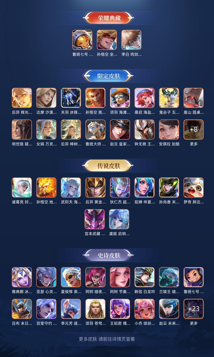 【V10 417皮】V10 412皮5典藏1珍品张飞-兔狲·蓬尾全息碎影天鹅之梦倪克斯神谕杀手不太冷 皮肤数量:412
