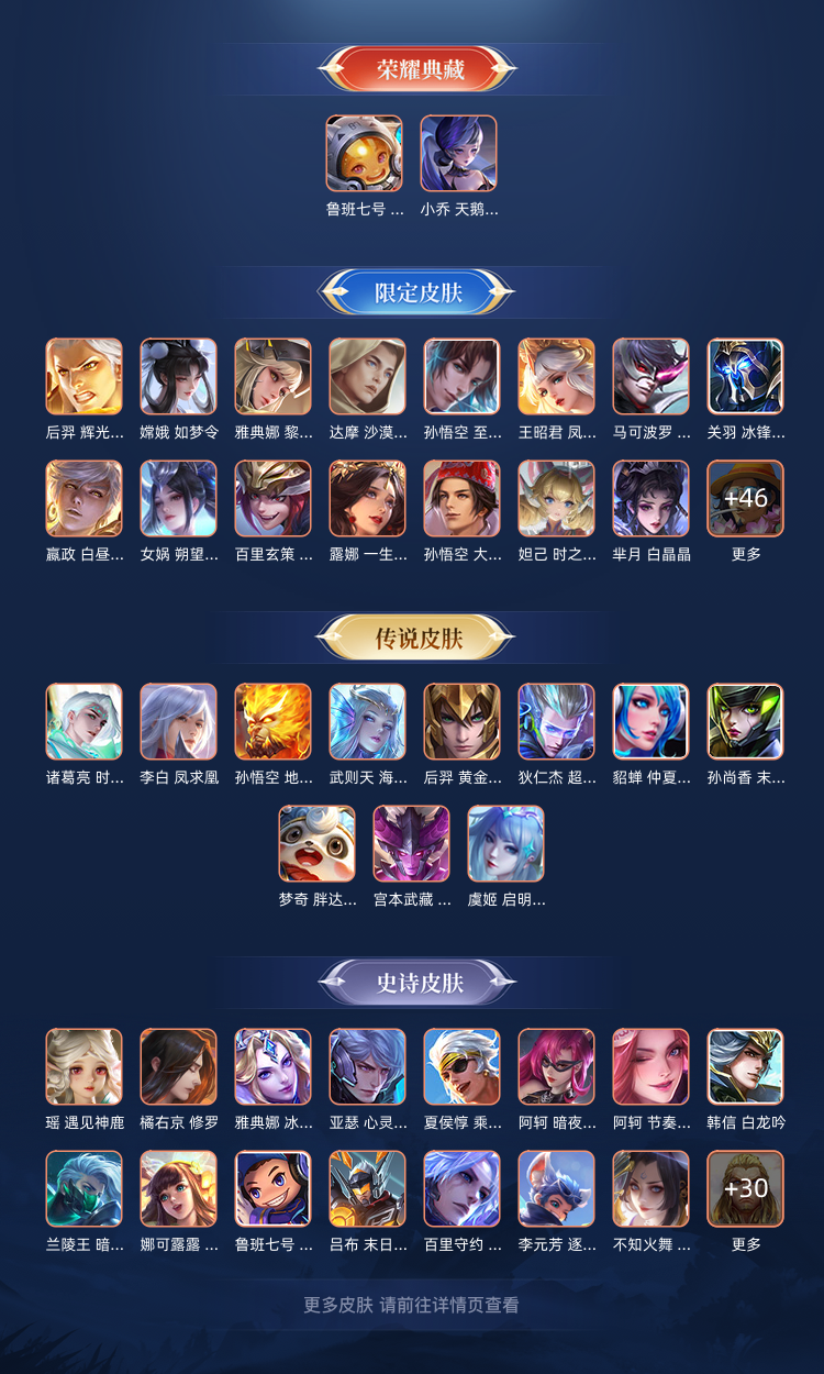【V10荣耀 729皮】国服小乔万战露娜万战裴擒虎✨全典藏全无双全珍品18星传说✨神罪千山共赴✨诡秘之主死亡执政官✨天机白泽