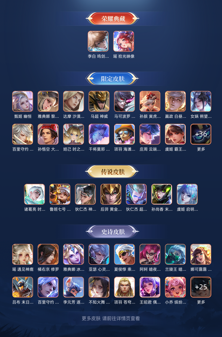 【V10 738皮】荣耀段✨全无双全珍品全传说✨颠倒童话魔镜全马年✨问心剑苍流箭✨无相全十周年✨神罪万灵伏威✨天机白泽