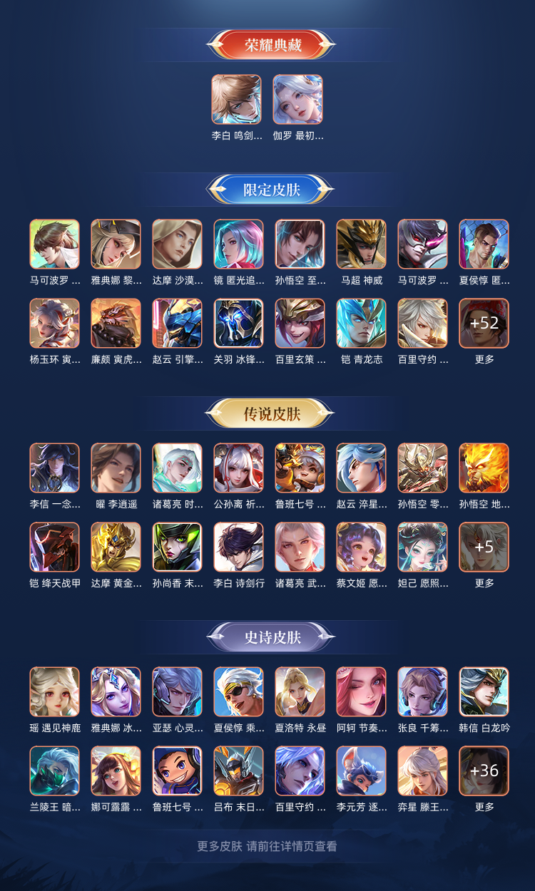 【V10 427皮】V10 414皮7典藏1无双碎月剑心弑枪猎影银白咏叹调无限飓风号鸣剑·曳影天鹅之梦 皮肤数量:414