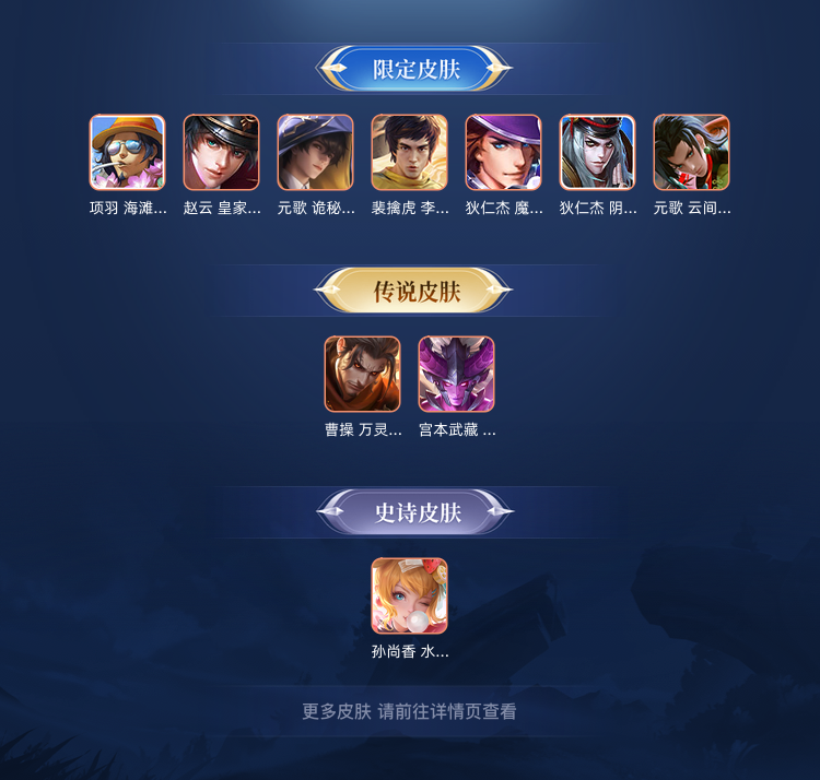 【V10 605皮】极品女号,貂蝉珍品无双慕夏已补,8典藏5无双73传说,瑶安琪拉珍品已补,瑶全皮法师辅助皮全