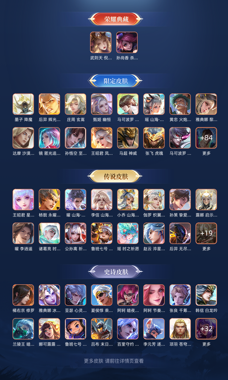 【V10 486皮】(贵族10-485皮肤)包天特惠-3典藏-35年限-63传说皮-白虎志-凤求凰-武则天加典藏皮