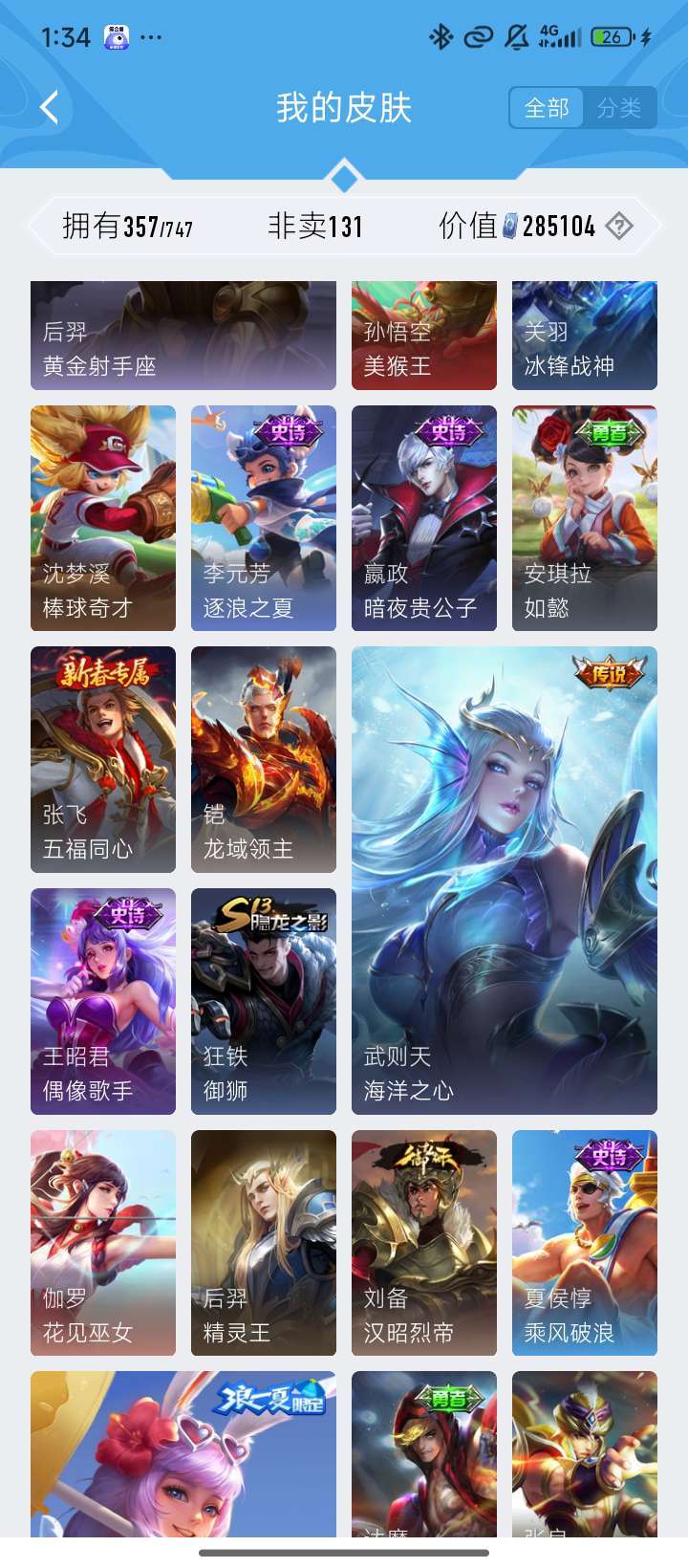 【V9 358皮】武则天,全息碎影,星空梦想,至尊宝,天魔缭乱,大多数皮肤都有,看图