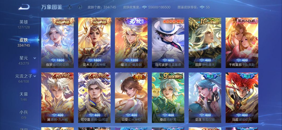 【V8 328皮】王者段位 满铭文 澜全皮 蛇年限定全皮 猴子伽罗荣耀典藏 刺客射手皮肤居多
