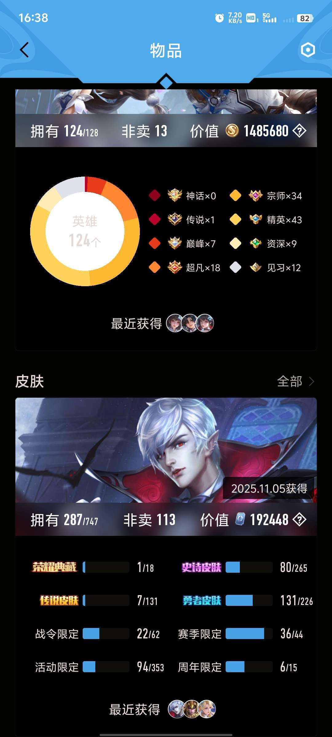【V5 284皮】韩信荣耀典藏,七传说 287个皮肤 124个英雄,可排位,到时没人租不下号