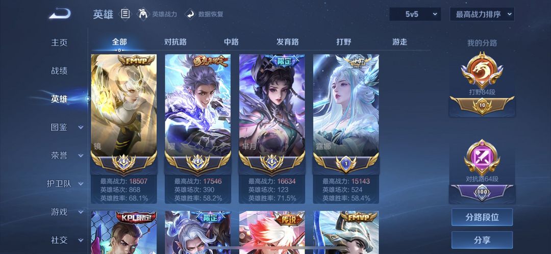 【V8 101皮】一典藏,俩珍品,一无双,五个fmvp,暃的朽木,段位:星耀一