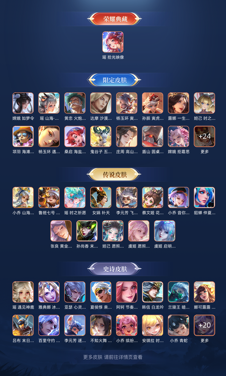 【V8 280皮】1典藏19传说 瑶典藏皮 时之彼端 貂蝉金色仲夏夜 曦玄引 妲己蛇年限定