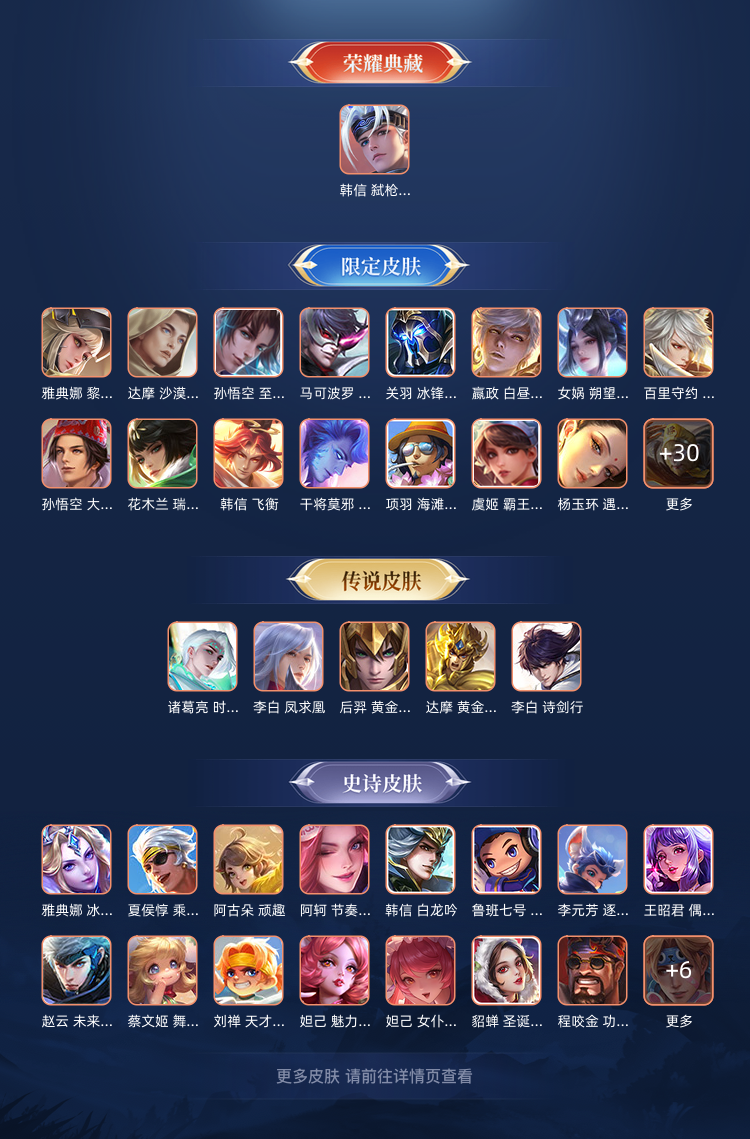 【V9 433皮】李信+凯+离恨烟无双+2典藏+墨染江湖全套+全马年限定+兔年限定+龙年限定+深海之息+马超琥珀等