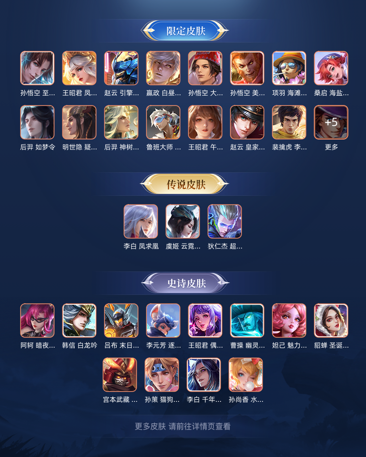 100皮孙悟空(孙悟空 至尊宝);李白(李白 凤求凰);后羿(后羿 阿尔法小队,后羿 辉光之辰);