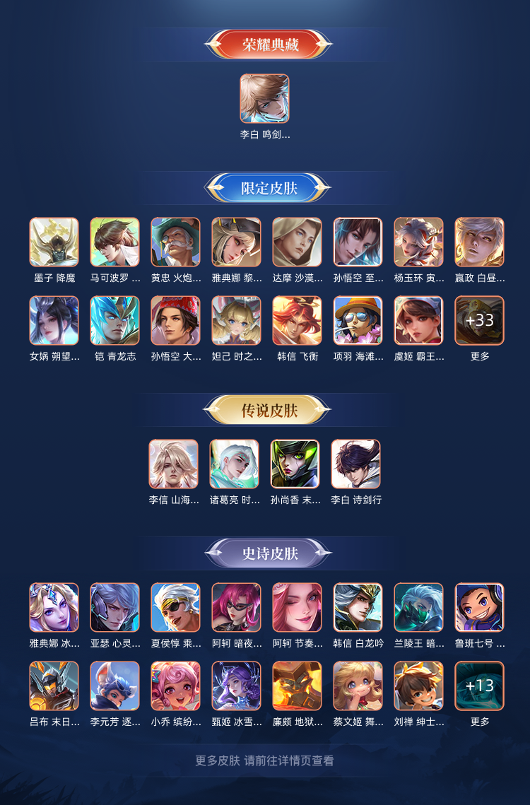 【V10 439皮】贵族v10⚡2省标⚡8典藏⚡50传说⚡135史诗皮肤⚡女号⚡包天便宜⚡优质皮肤号