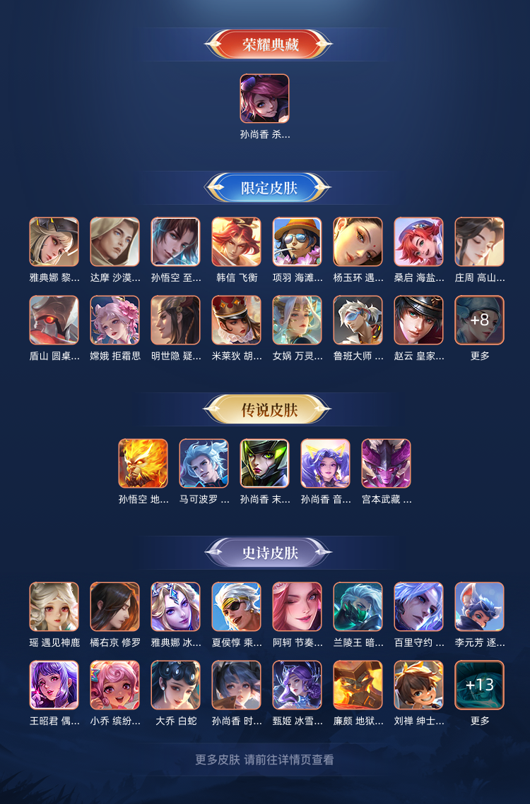 【V10 524皮】519皮❤️7典藏5珍品无双❤️70传说 怪盗基德 冰雪奇缘 霜北刀 落雪白狼 无双飞将
