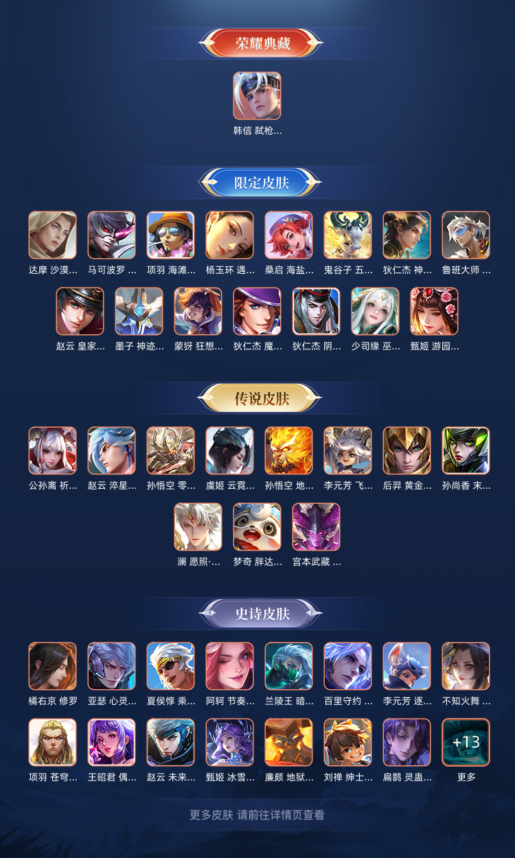 【V10 353皮】两典藏韩信花木兰,三无双,公孙离,李白,武则天,34传说