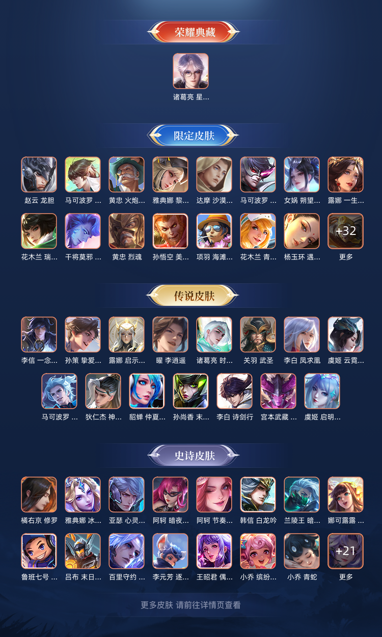 【V10 486皮】小兵典藏-Hello‖妲己无双限定-青丘九尾‖李白荣耀水晶-鸣剑曳影‖全息碎影‖天鹅之梦