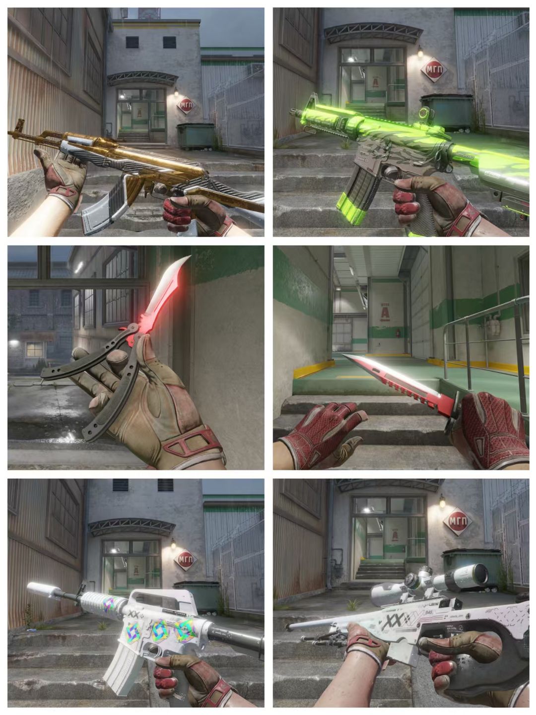 完美5E⭐蓝色系⭐双刀⭐澄澈之水蝴蝶爪子刀⭐双栖手套⭐火神AK⭐狮子之日AWP⭐双探员出逃的萨莉