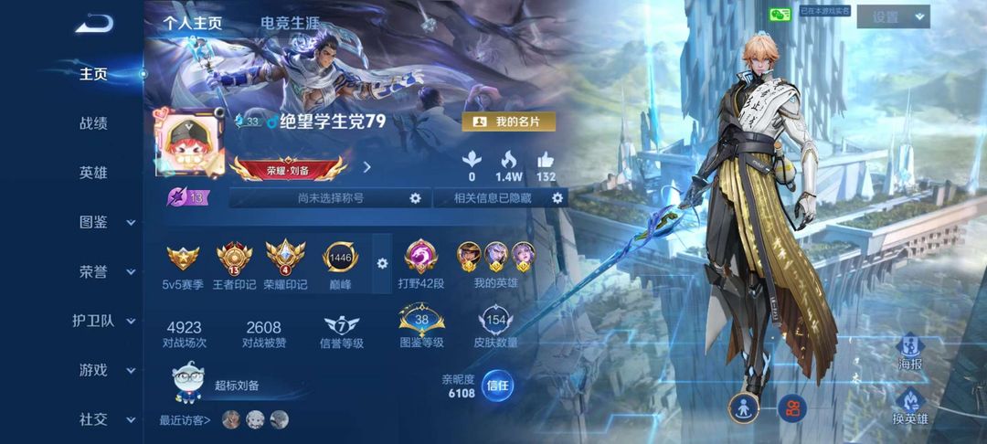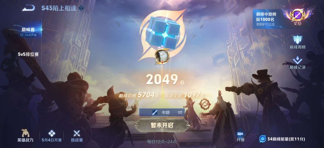 巅峰总榜5704 省标猫咪 海月 大桥 干将可以拿去打排位 不能打巅峰赛
