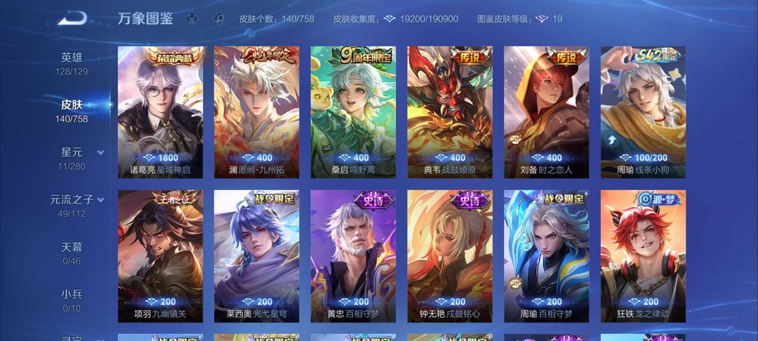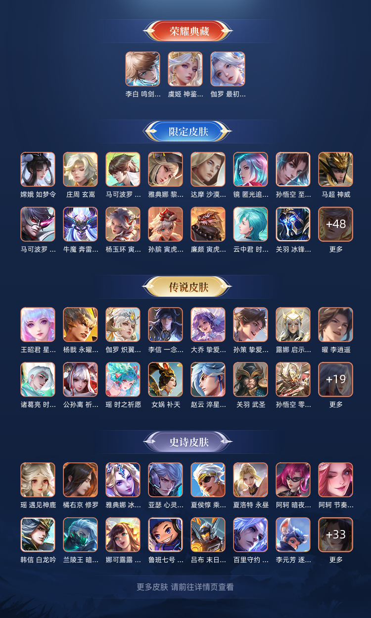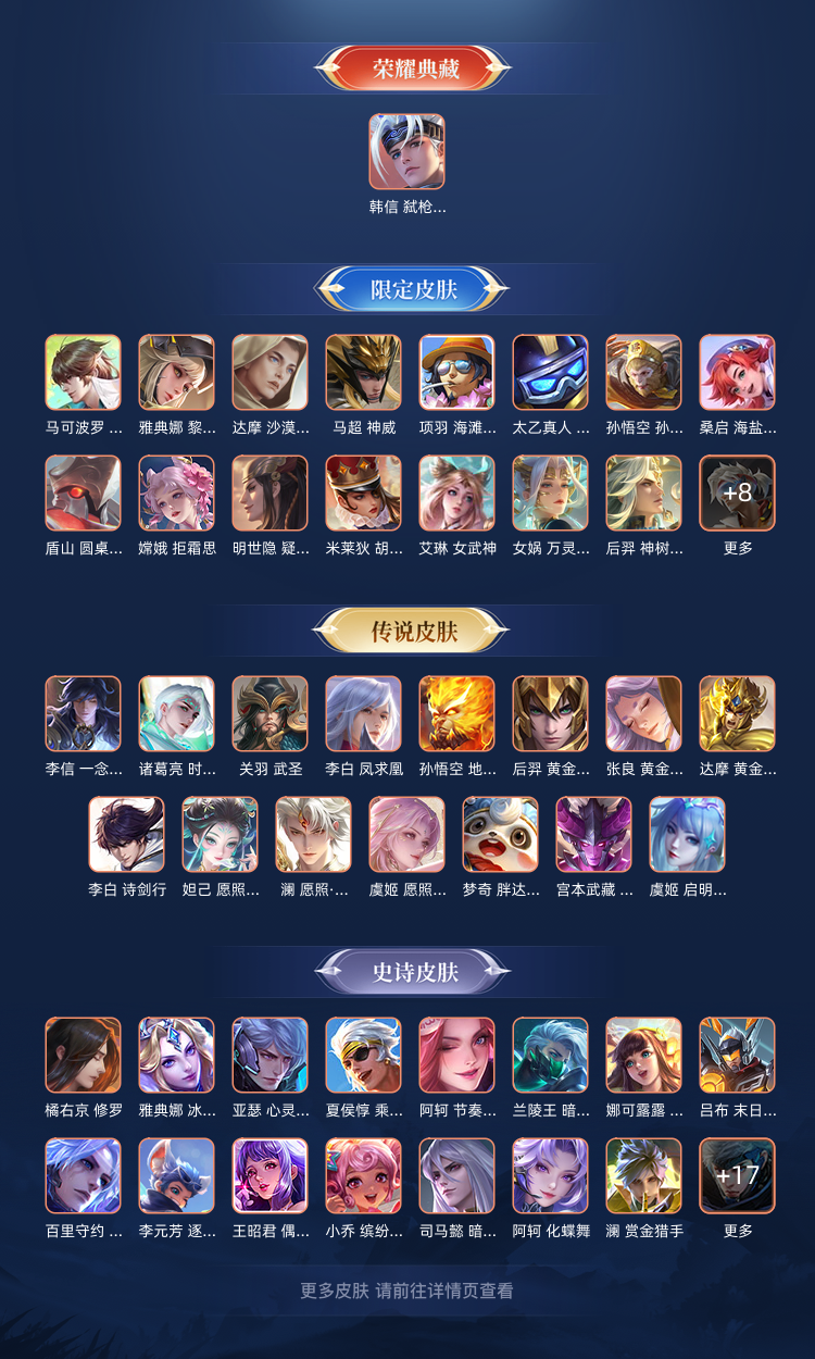 典藏:1传说4史诗:37可以排位可以加好友信誉分100