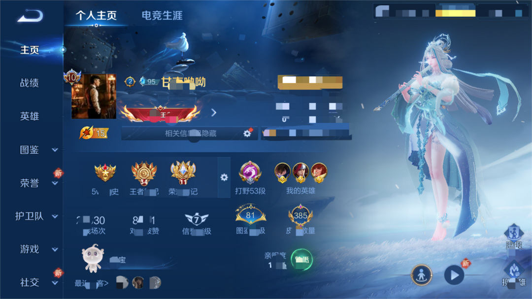 【V10 384皮】禁言!打野53段12金标!V10!385皮肤2水17传说!弑枪猎影至尊宝白虎志凤求凰武陵仙君金貂蝉