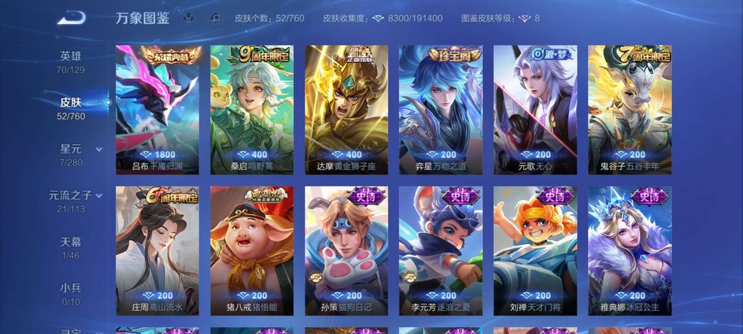 不能加好友-v8超值200皮丨云鹰飞将久胜战神丨至尊宝白虎志凤求凰丨地狱火龙胆飞衡岱宗丨打野28段