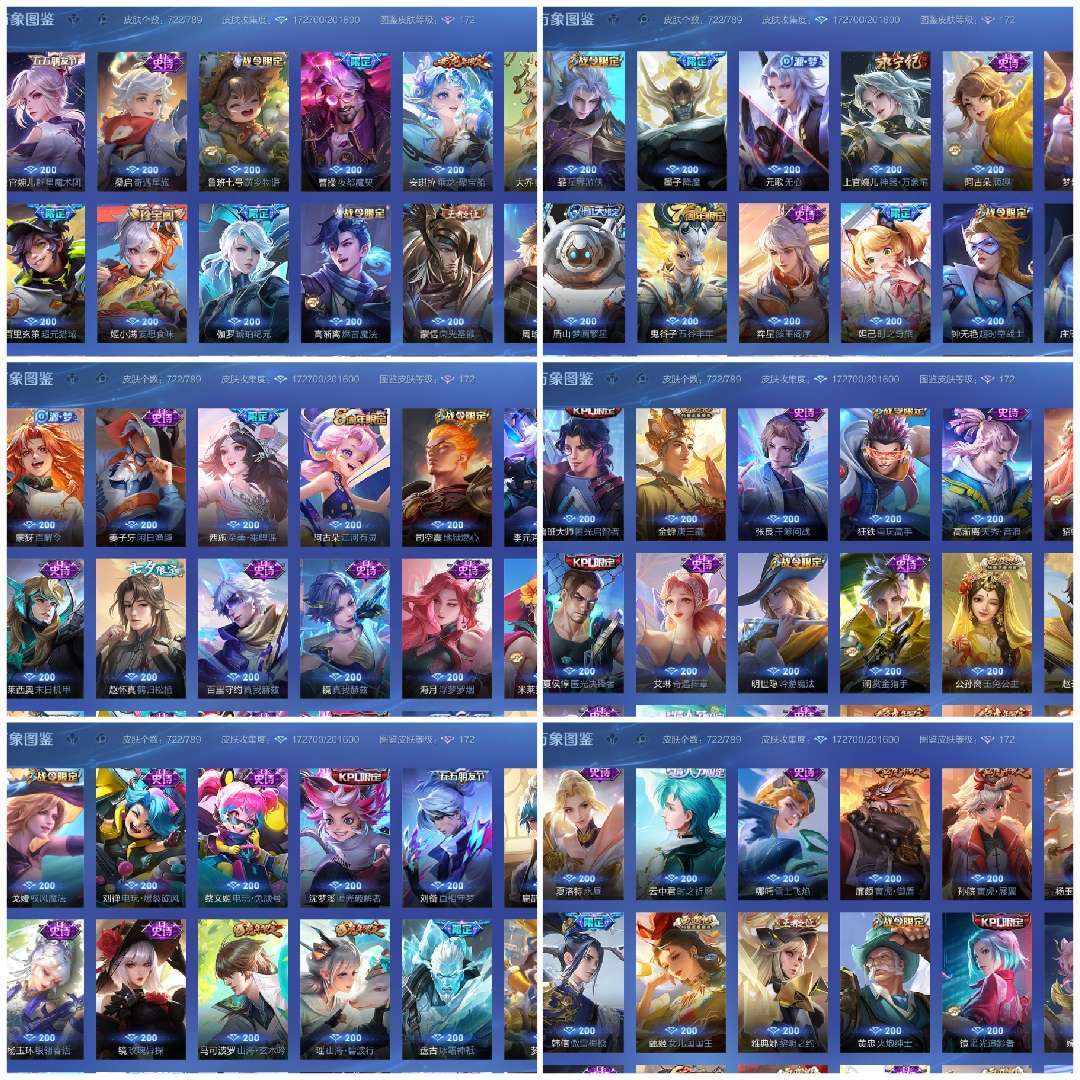 724皮肤无双V10靓号,至尊宝 白虎志 凤求凰 梅西 小乔天鹅 稀有限定皮肤大部分都有
