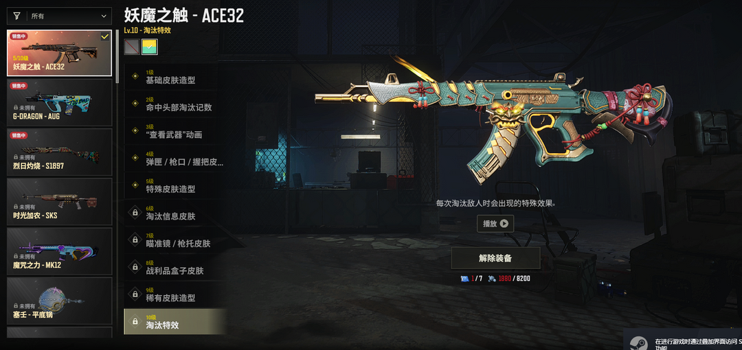 二级密码123456✅⑤级妖魔之触ACE✅异色ACE✅湮灭M762✅金色落叶AKM✅蟒蛇花园M4✅蜂