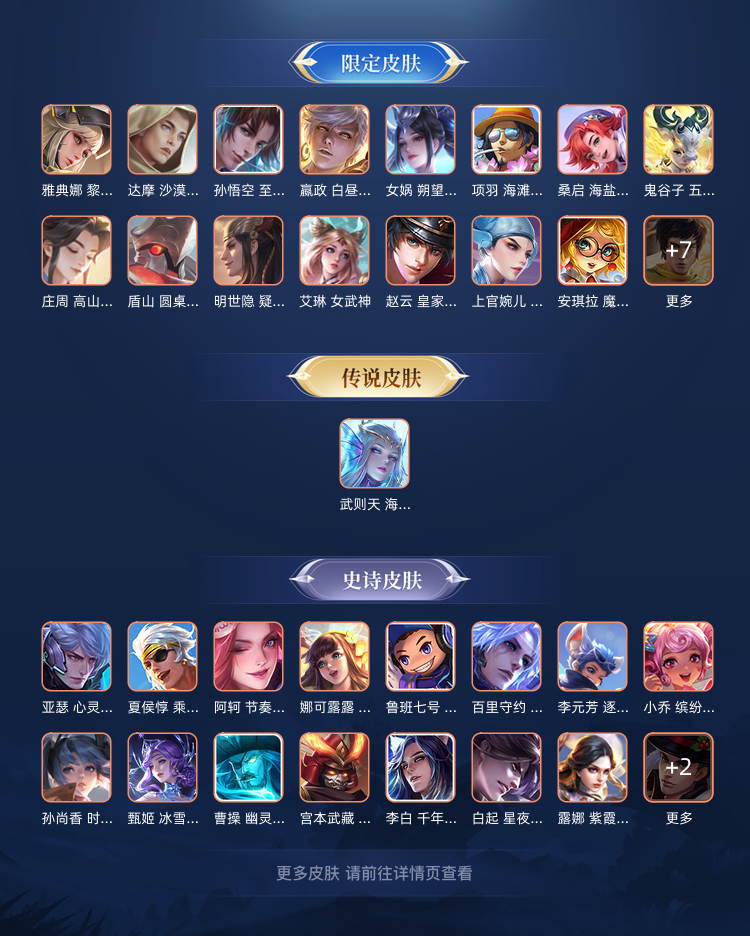 【V9 296皮】有武则天 王者段炸鱼排位号 皮肤200多个 李白、凯和公孙离的无双皮,韩信新传说皮