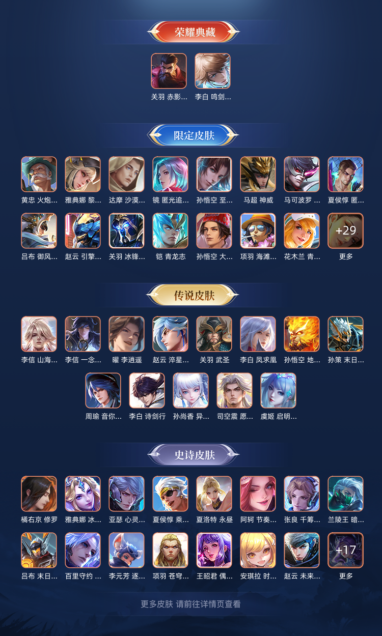 【V9 376皮】✅ 皮肤总数:371个✅ 荣耀典藏:5款✅ 传说皮肤:29款✅ 额外福利:多款史诗+热门限定皮肤若干