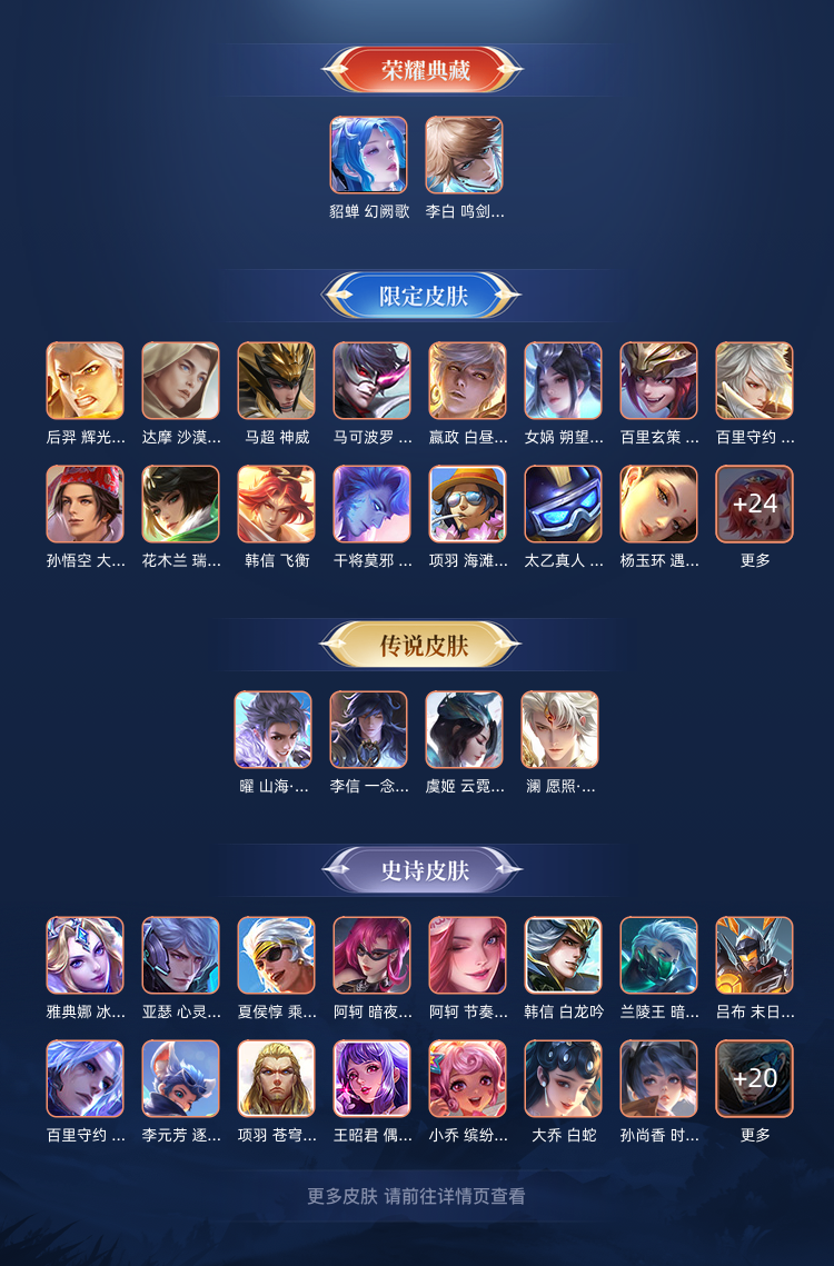【V10 438皮】【可打排位赛】7水42传❤幻阙歌❤李白鸣剑❤时之奇旅❤无双飞将❤深海之息❤无限飓风号❤宣太后❤