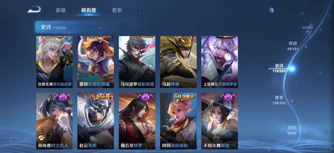 【V8 240皮】贵8 无双王者 239个皮肤 1典藏 99限定 19传说 87史诗 可排位 全铭文