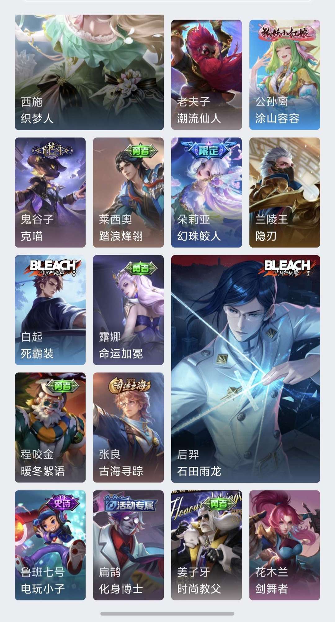 《澜龙年限定》《白晶晶》《夏侯惇kpl限定》《仲夏梦之夜》