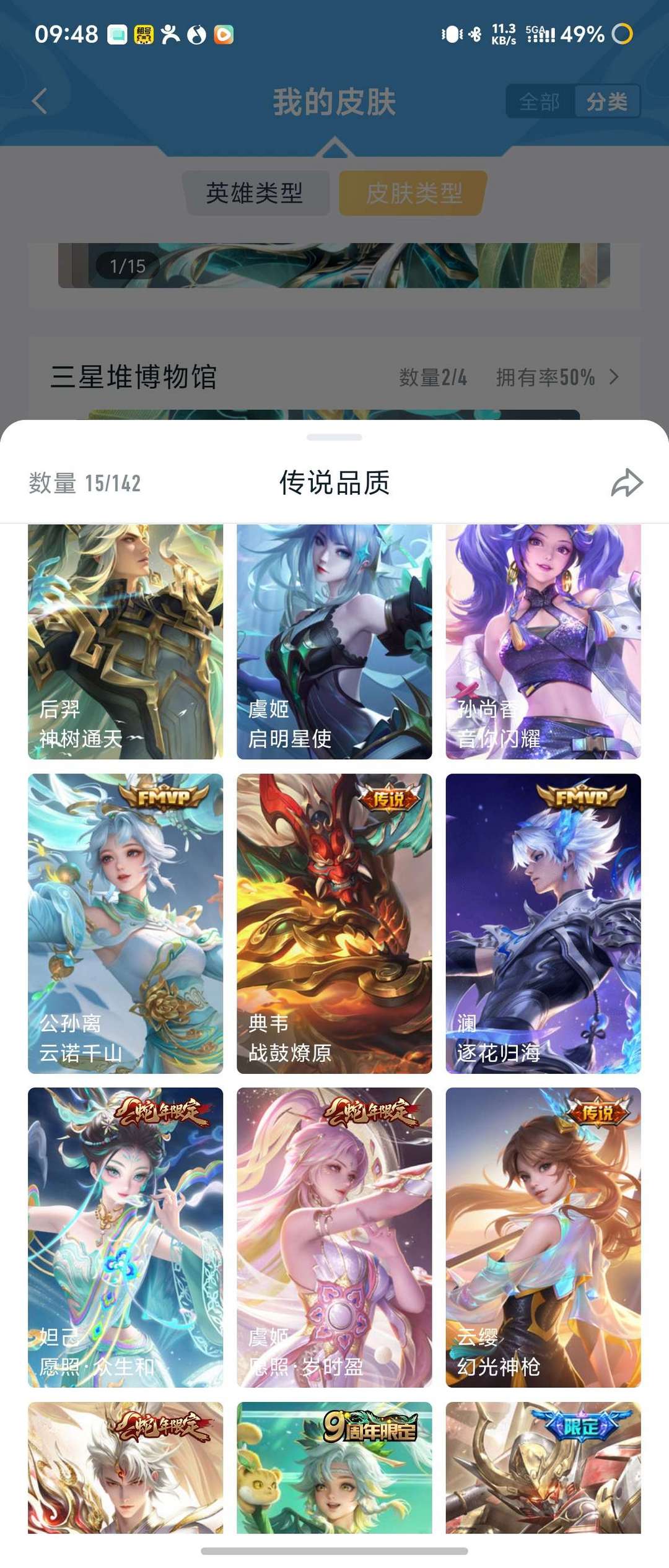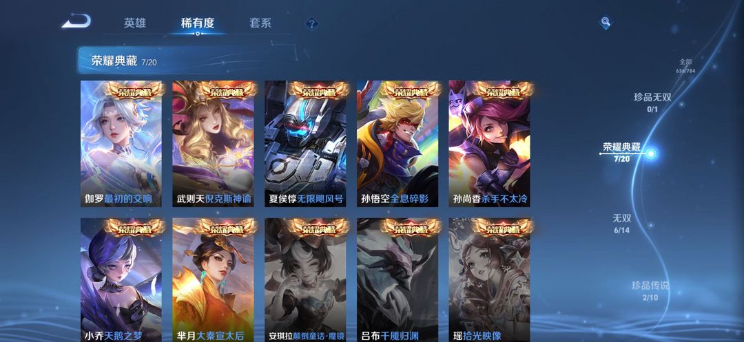 【V10 633皮】636皮7典藏6无双2珍品传说96传说221史诗,可排位