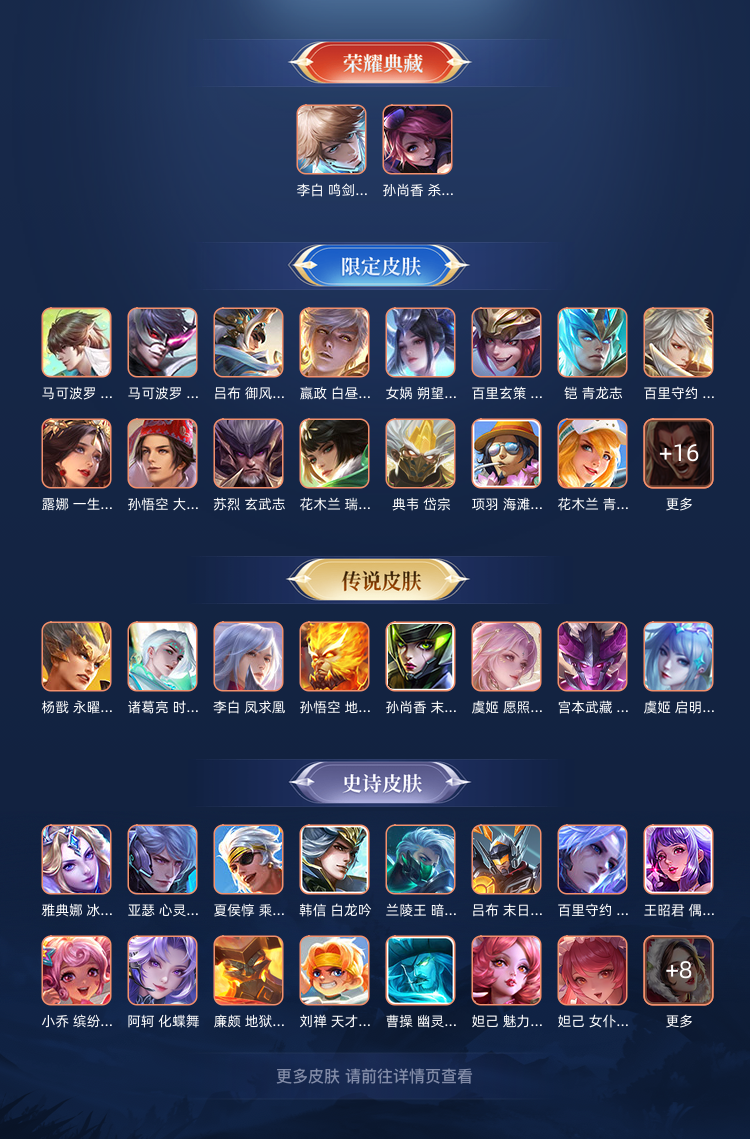 【V9 442皮】三,典藏。20多个传说。10来个限定400多个皮肤。还有貂蝉的无双真品。