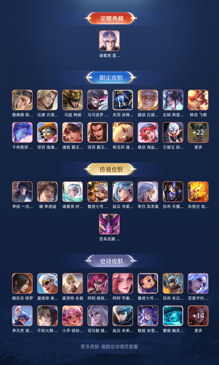 传说皮肤十二个,机甲铠 机甲猴子 情人节兰陵王 年限公孙离 年限诸葛亮等