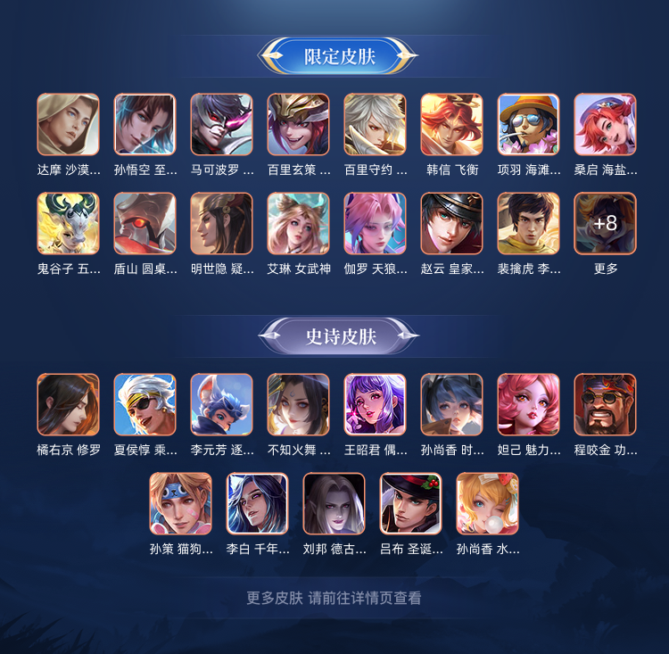多皮肤全英雄,有典藏皮肤,可排位可匹配