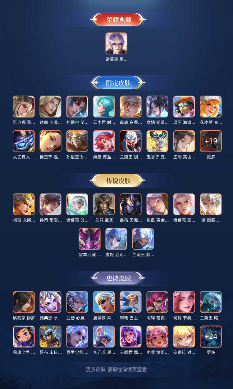 【V2 177皮】【V8账号】荣耀典藏+星月皮肤+限定皮肤+史诗皮肤