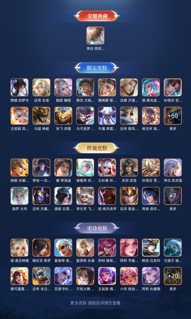 【V7 271皮】荣耀典藏:李白伽罗诸葛亮武则天貂蝉鲁班七号