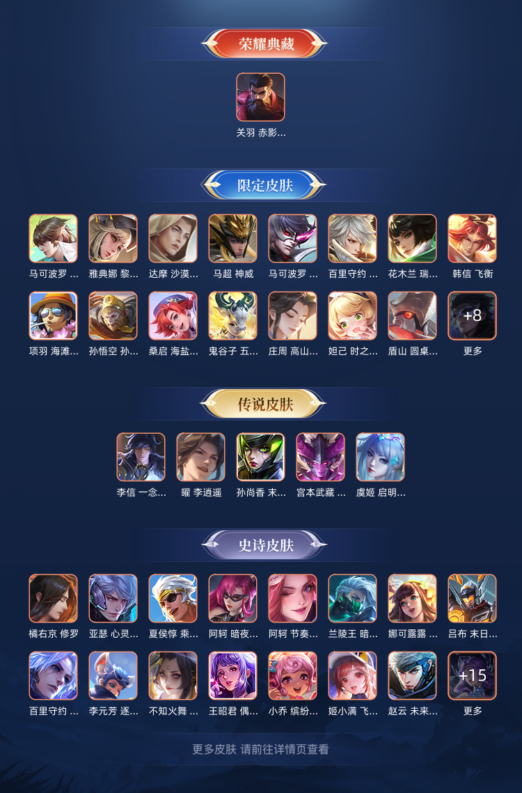 【V3 210皮】v8限定皮肤多,荣耀典藏,李逍遥,火舞无双,215个皮肤,狄仁杰,王昭君,孙尚香,宫本。