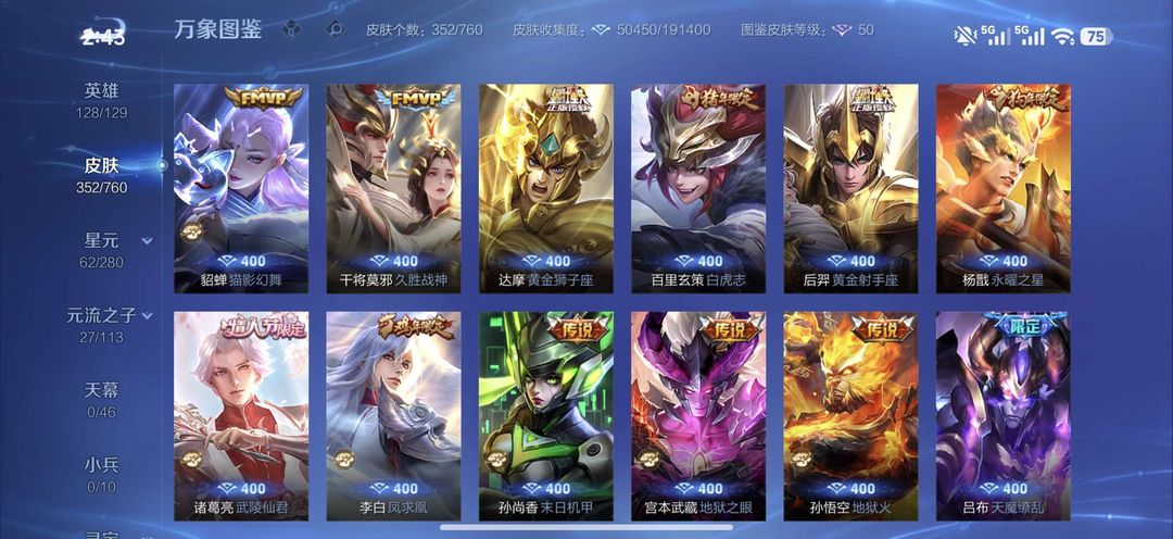 【V9 351皮】李白典藏23传说皮104史诗皮李白基本全了凤囚凰梅西打野的都有
