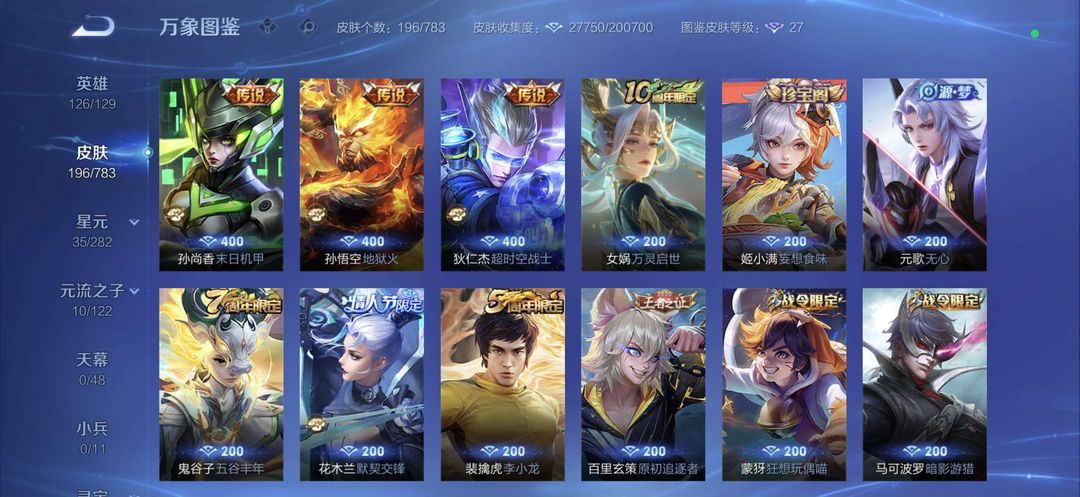 【V10 555皮】贵族V10❤549皮肤❤十传说天幕❤五无双限定❤16荣耀典藏9星元