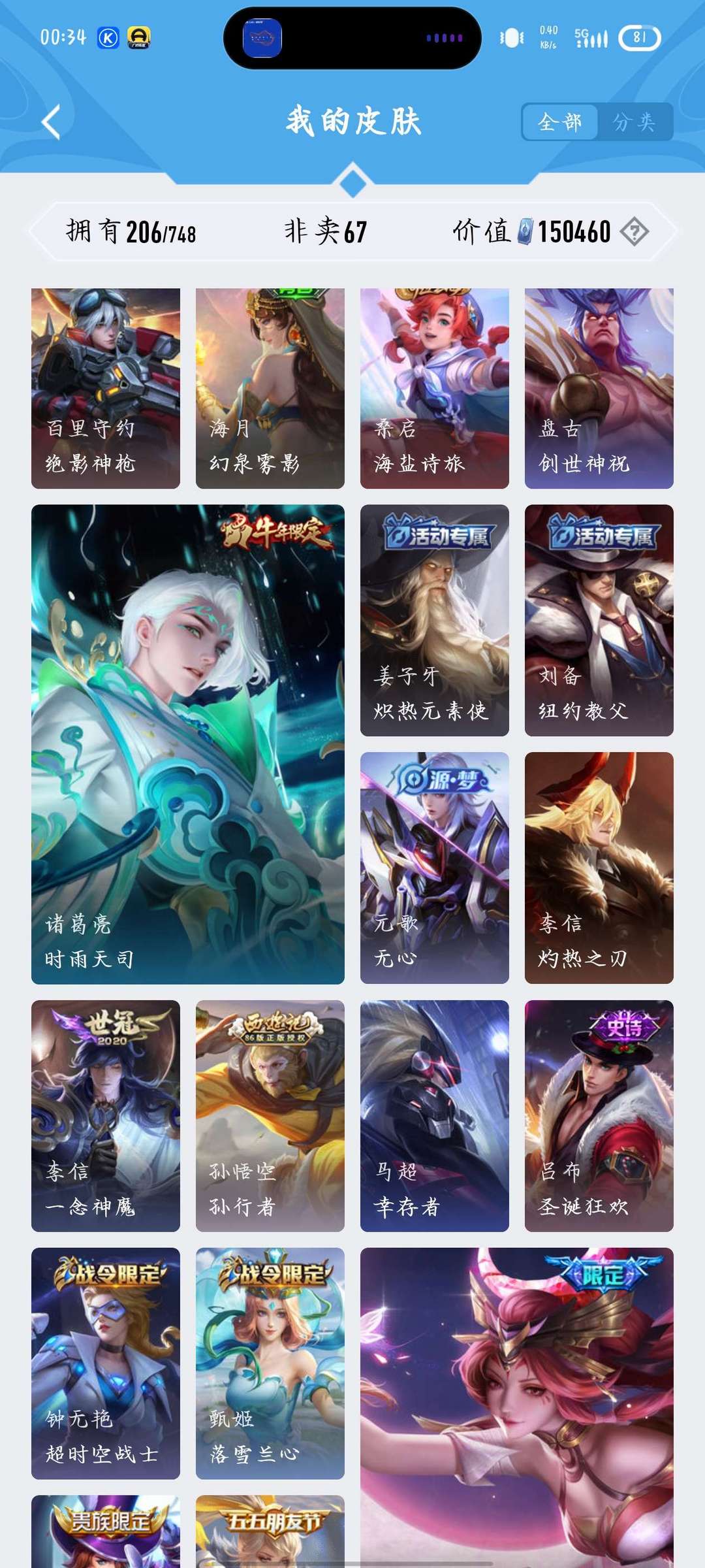 【V8 295皮】一典藏。至尊宝。梅西。大部分限定皮肤……