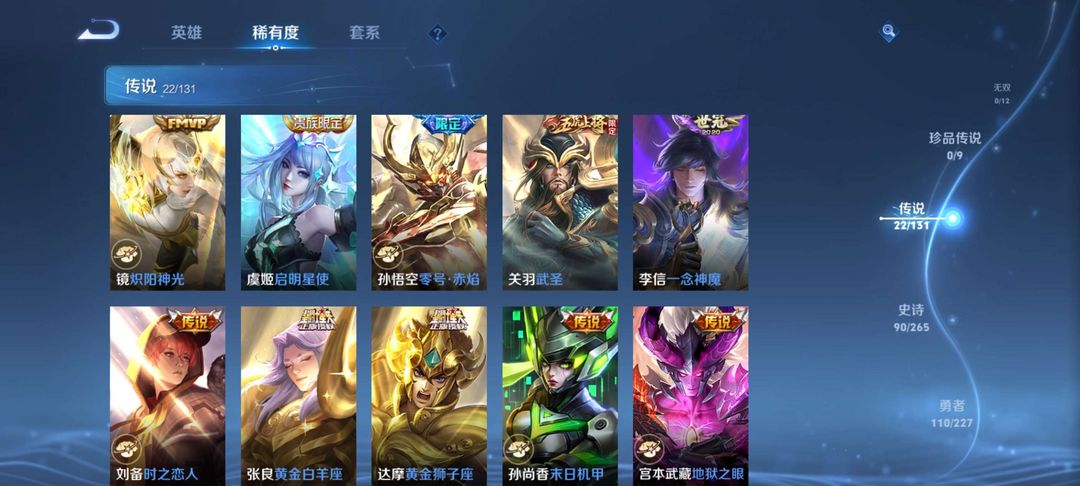 【V6 184皮】满英雄满铭文无双段位还有传说皮肤典藏皮肤