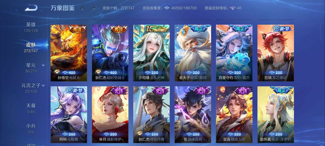 【V9 419皮】全英雄,四百➕皮肤,荣耀典藏,传说限定,史诗皮肤应有尽有