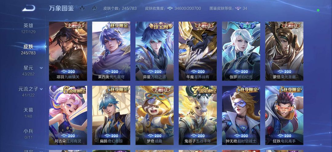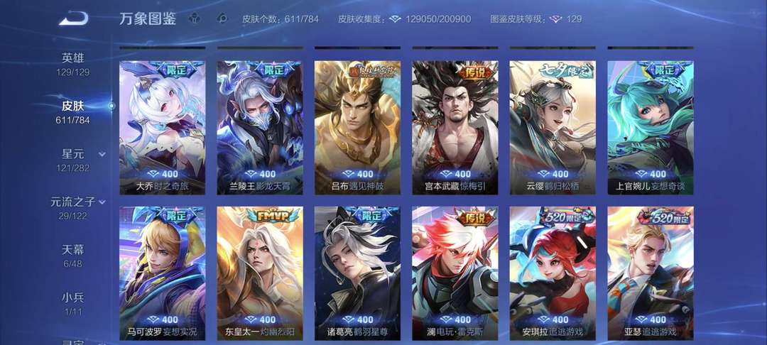 【V10 609皮】7典藏+5无双+全套龙年、兔年、虎年 无双王者 全英雄全铭文 可排位可巅峰 请文明游戏 祝您玩的愉快