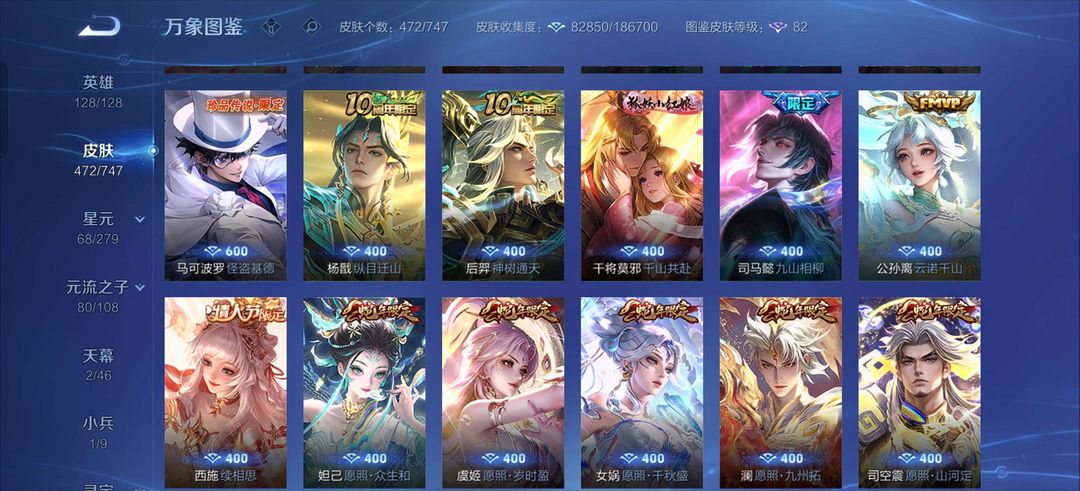 V8 1典藏 16传说 81史诗 97限定❤️小姐姐爱玩❤️中单射手皮肤多❤️虞姬全皮❤️