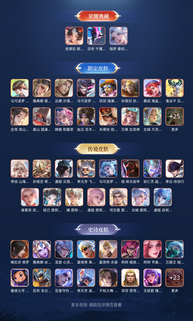 【V8 361皮】三荣耀典藏,吕布,安琪拉,伽罗。多款传说皮,史诗皮。