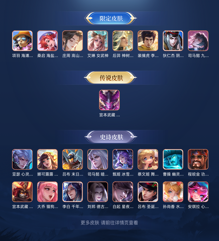 【V5 157皮】李白无双岁月剑心鲁班虎年限定寅虎瑞焰时之奇旅虞姬世冠云裳雀翎后羿限定神树通天辉煌之辰夏侯惇霜北刀